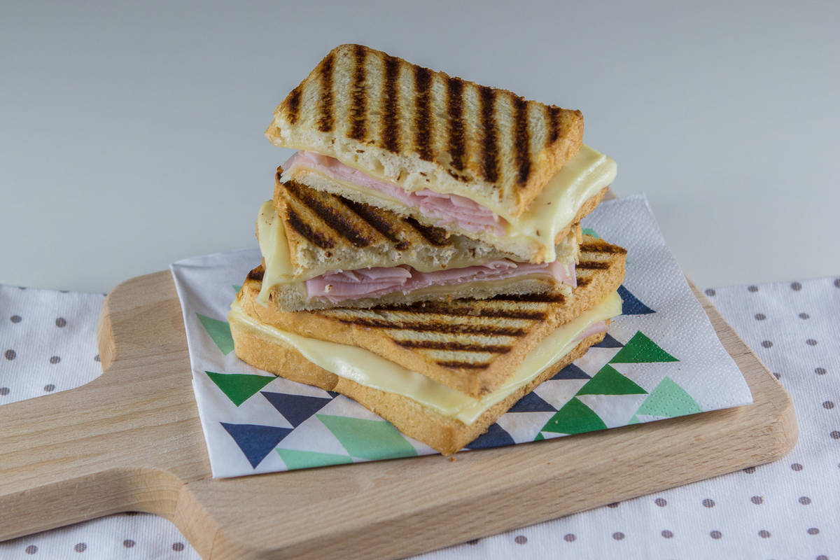 Recept za odlične popečene kruhke s tremi vrstami sira in šunko.